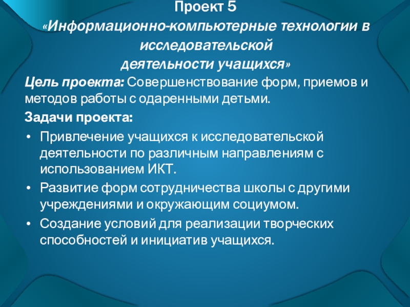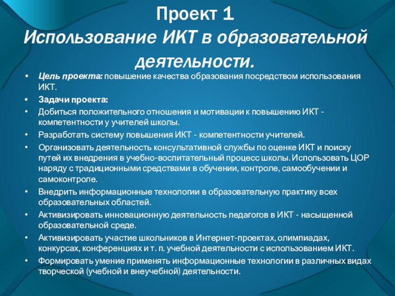 Активизировать участие школьников в Интернет-проектах, олимпиадах, конкурсах, конференциях и т. п. учебной деятельности с использованием ИКТ.
