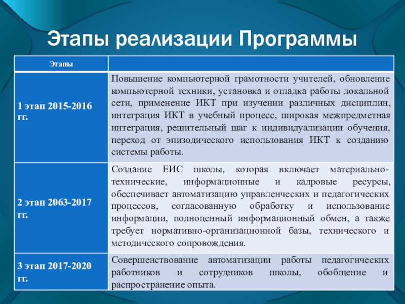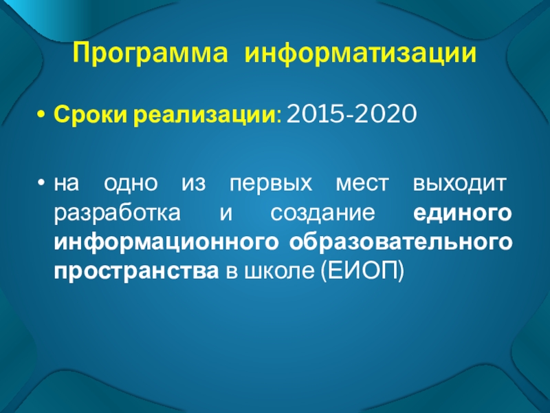 и создание единого информационного образовательного пространства в школе (ЕИОП)
