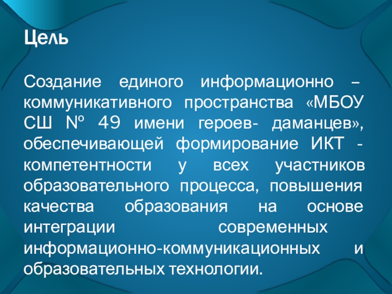 Создание единого информационно – коммуникативного пространства «МБОУ СШ № 49