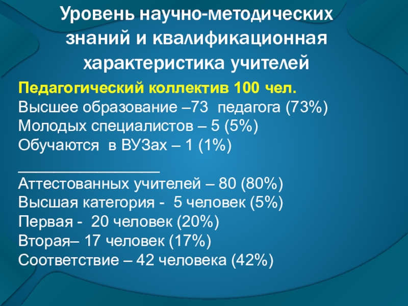 Слайд 10Уровень научно-методических знаний и квалификационная характеристика учителей
