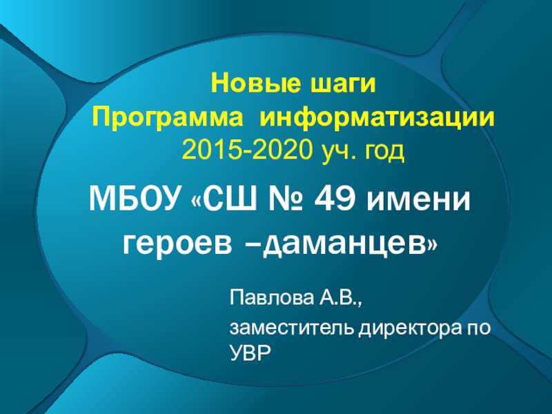Заместитель директора МБОУ «СШ № 49 имени героев –даманцев» Павлова А.В.