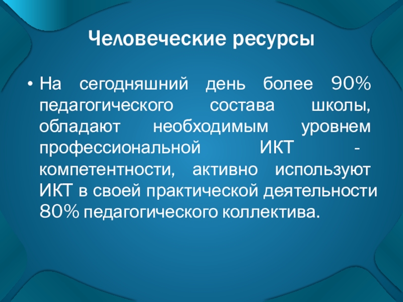 уровнем профессиональной ИКТ - компетентности, активно используют ИКТ в своей практической деятельности 80% педагогического коллектива.