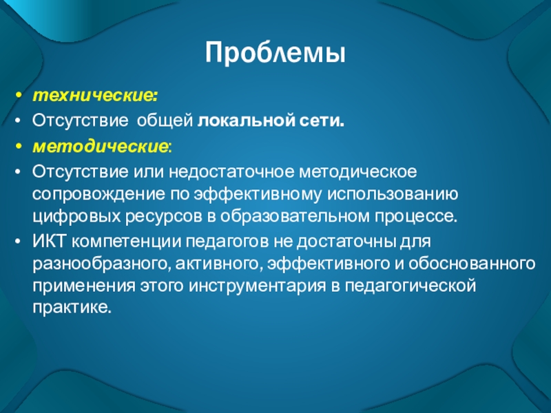 Отсутствие или недостаточное методическое сопровождение по эффективному