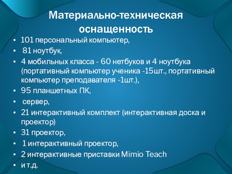 нетбуков и 4 ноутбука (портативный компьютер ученика -15шт., портативный компьютер преподавателя -1шт.),