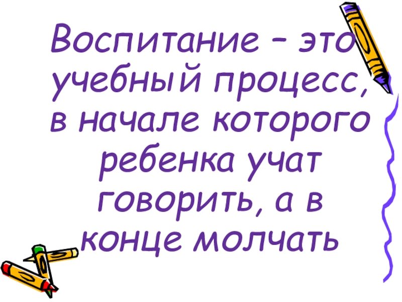 Слайд 2Воспитание – это учебный процесс, в начале которого ребенка учат говорить,