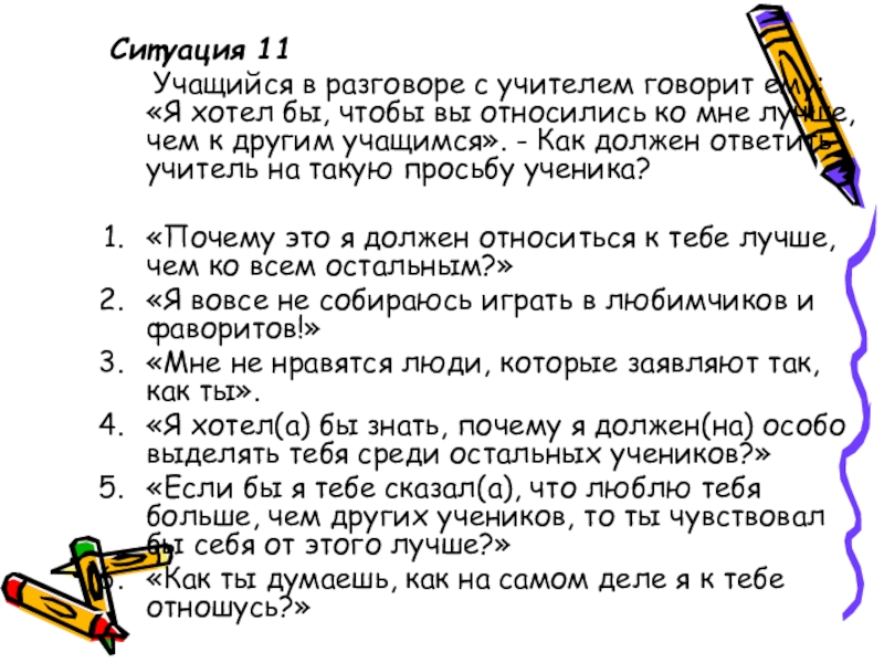 чтобы вы относились ко мне лучше, чем к другим учащимся». - Как должен ответить учитель на такую просьбу ученика?