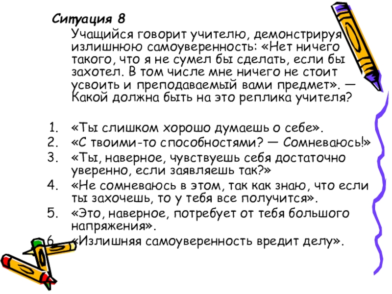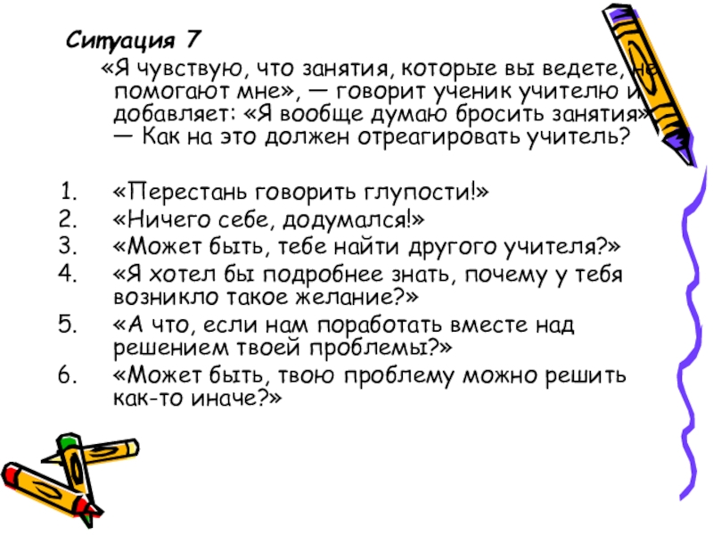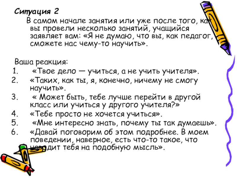 провели несколько занятий, учащийся заявляет вам: «Я не думаю, что вы, как педагог, сможете нас чему-то научить».
