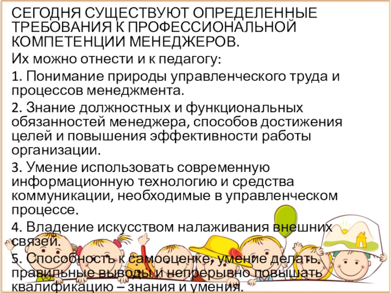 Слайд 17СЕГОДНЯ СУЩЕСТВУЮТ ОПРЕДЕЛЕННЫЕ ТРЕБОВАНИЯ К ПРОФЕССИОНАЛЬНОЙ КОМПЕТЕНЦИИ МЕНЕДЖЕРОВ.
