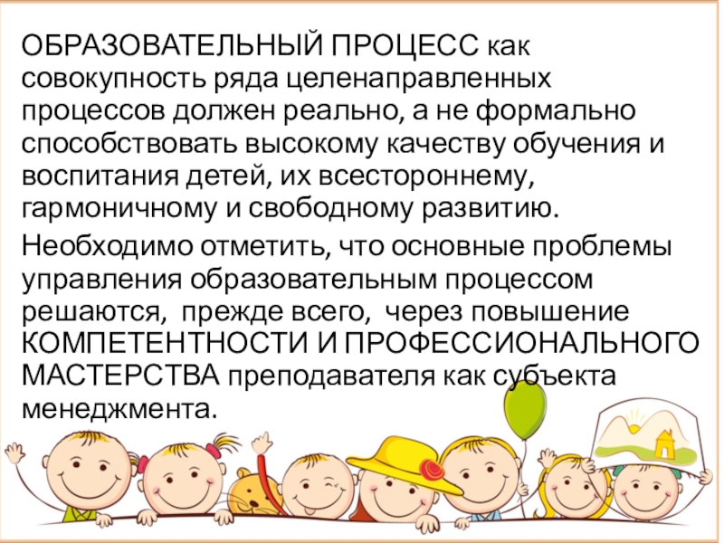 Необходимо отметить, что основные проблемы управления образовательным процессом решаются, прежде всего, через повышение КОМПЕТЕНТНОСТИ И ПРОФЕССИОНАЛЬНОГО МАСТЕРСТВА преподавателя как субъекта менеджмента.
