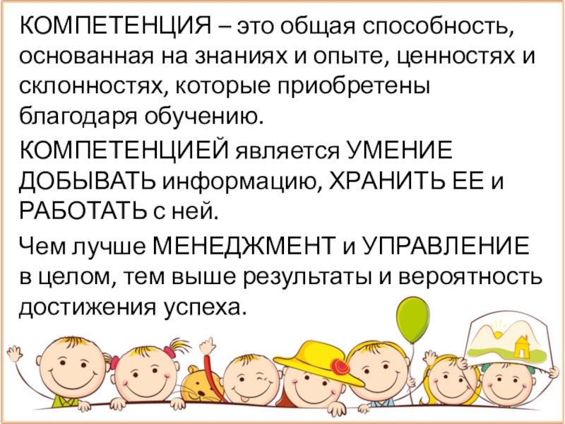 КОМПЕТЕНЦИЕЙ является УМЕНИЕ ДОБЫВАТЬ информацию, ХРАНИТЬ ЕЕ и РАБОТАТЬ с ней.
