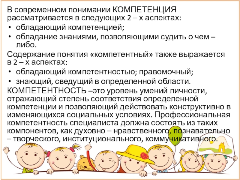 Содержание понятия «компетентный» также выражается в 2 – х аспектах: