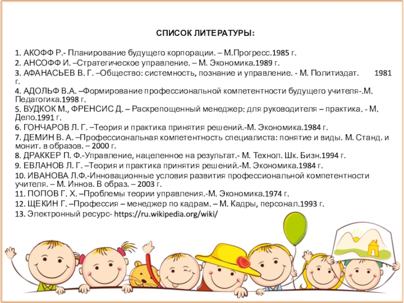 1. АКОФФ Р.- Планирование будущего корпорации. – М.Прогресс.1985 г.