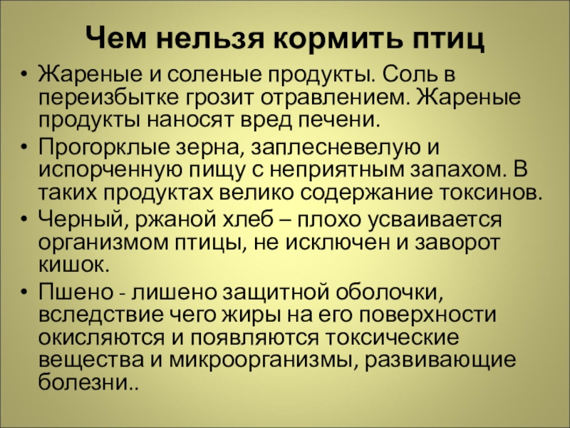 Слайд 15Чем нельзя кормить птиц