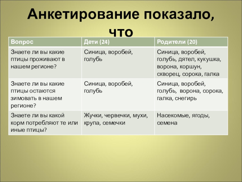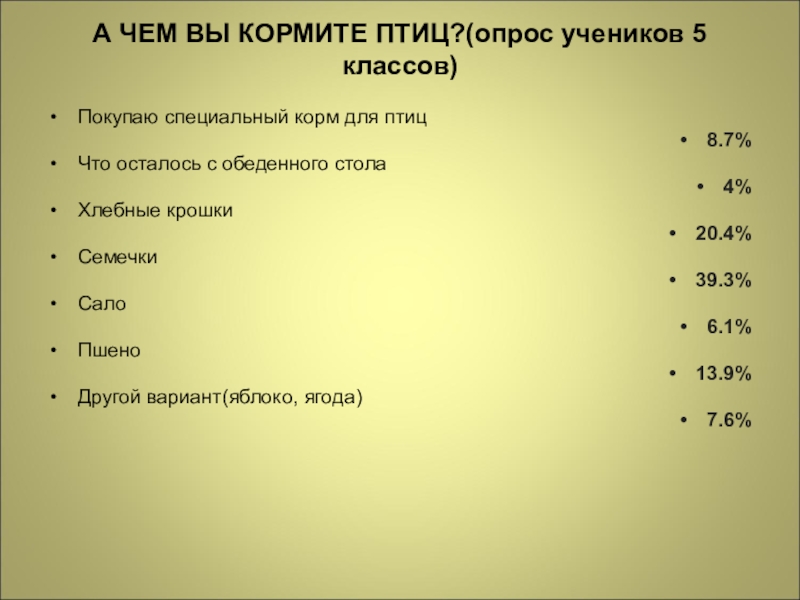 А ЧЕМ ВЫ КОРМИТЕ ПТИЦ?(опрос учеников 5 классов)