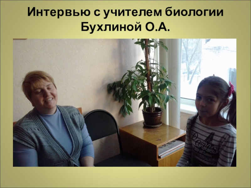 Слайд 9Интервью с учителем биологии Бухлиной О.А.