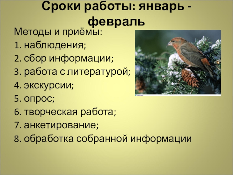 Слайд 4Сроки работы: январь - февраль