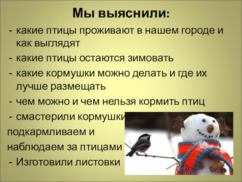 3. расширить представления о жизни зимующих птиц нашего региона