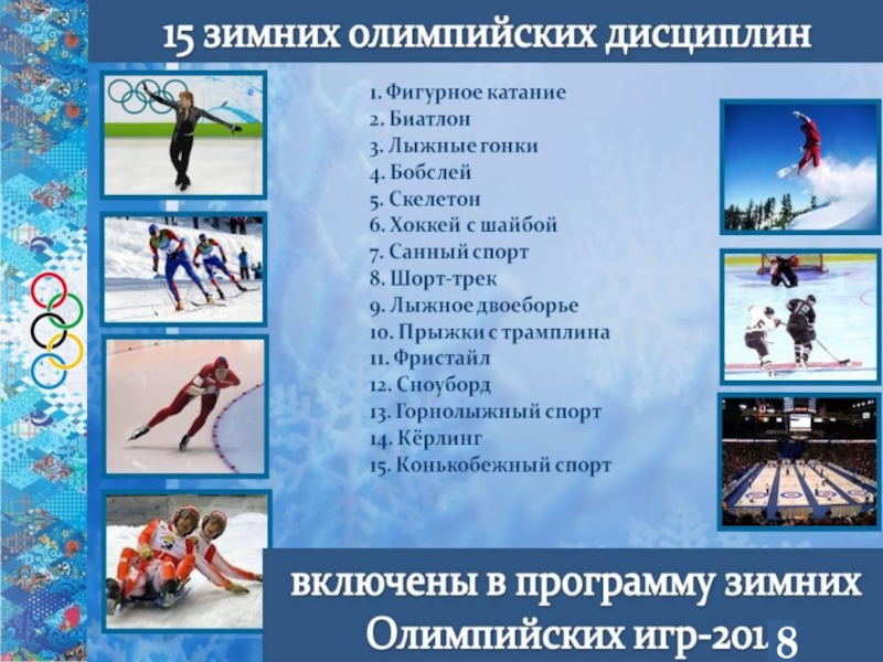 5. Назовите виды спорта, в которых используют лыжи?