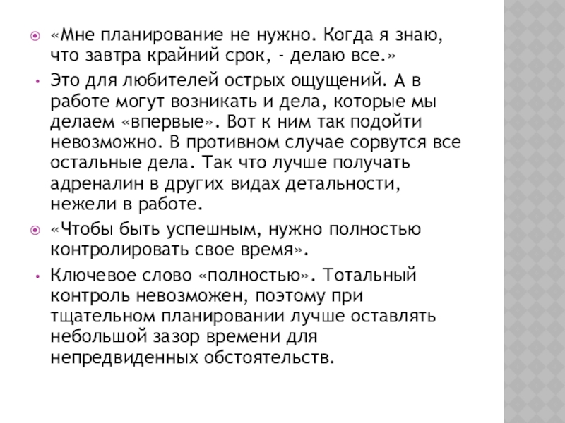 Слайд 8«Мне планирование не нужно. Когда я знаю, что завтра крайний срок,