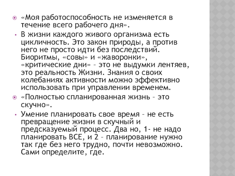 Слайд 7«Моя работоспособность не изменяется в течение всего рабочего дня».