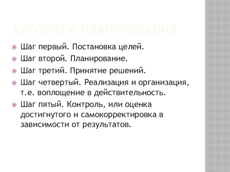 Слайд 15АЛГОРИТМ ПЛАНИРОВАНИЯ