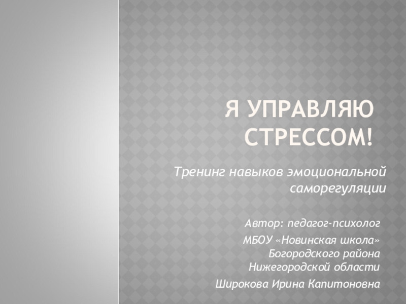 Слайд 1Я УПРАВЛЯЮ СТРЕССОМ!