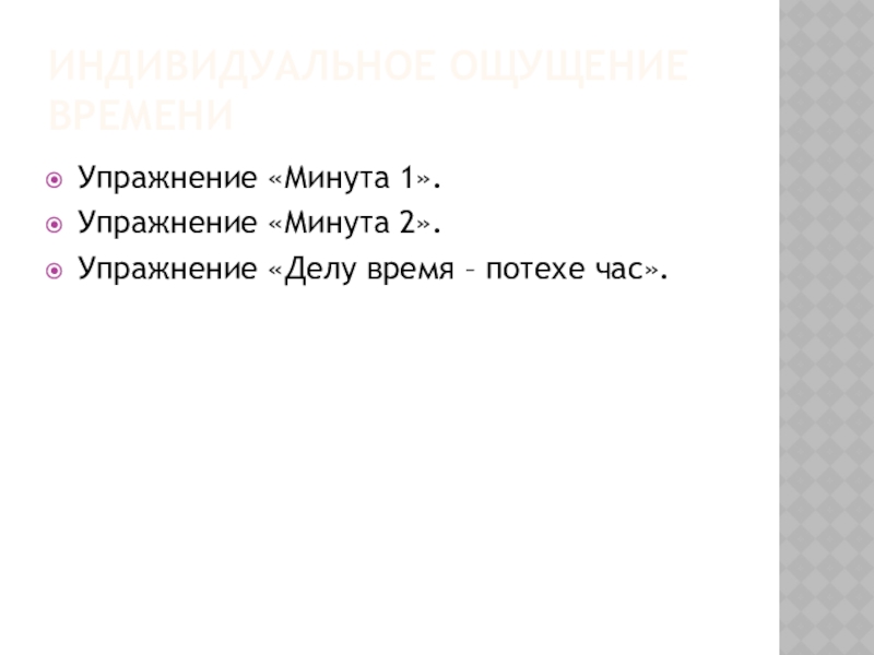 Слайд 12ИНДИВИДУАЛЬНОЕ ОЩУЩЕНИЕ ВРЕМЕНИ