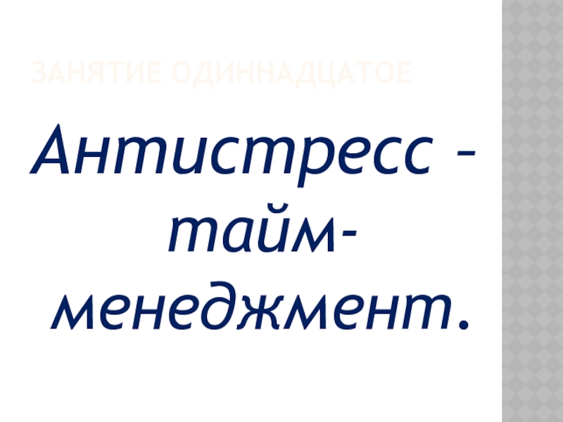 Антистресс – тайм-менеджмент.