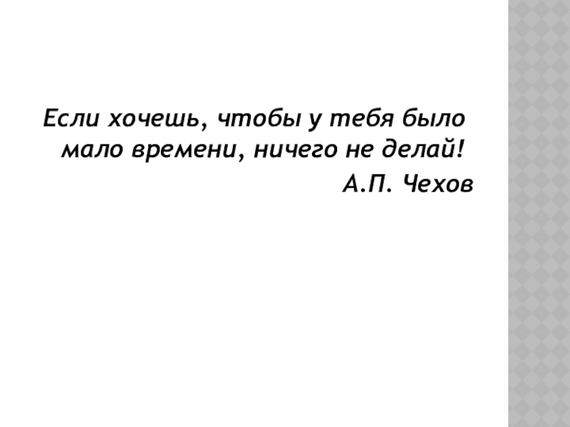 Слайд 3Если хочешь, чтобы у тебя было мало времени, ничего не делай!