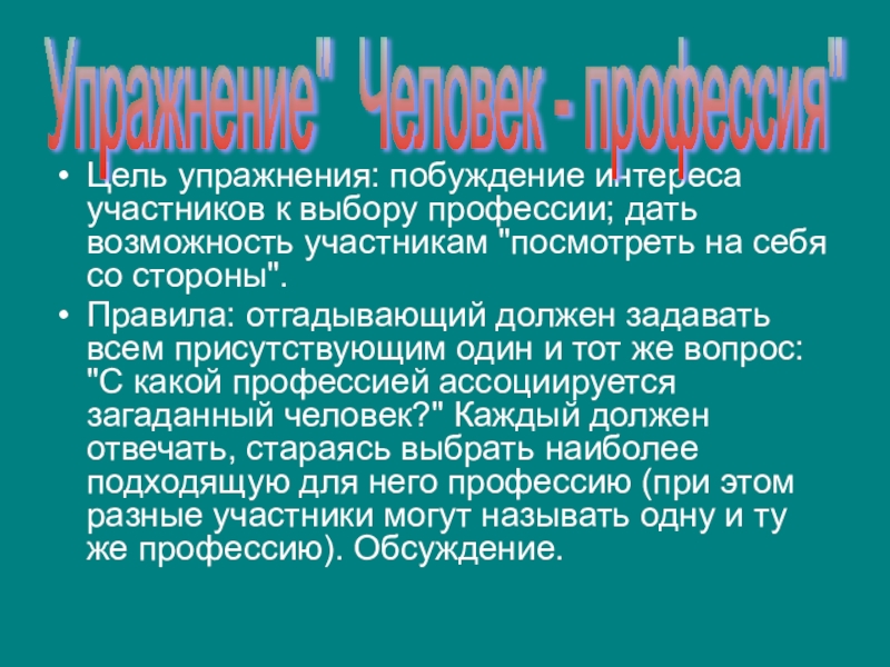 Упражнение" Человек - профессия"