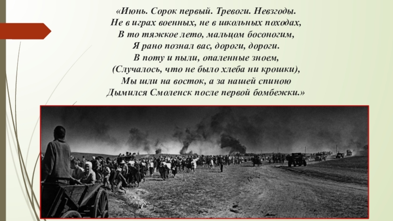 Слайд 11«Июнь. Сорок первый. Тревоги. Невзгоды.
