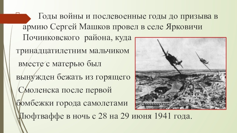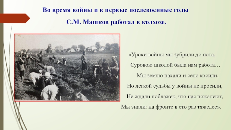 Слайд 10 Годы войны и послевоенные годы до призыва