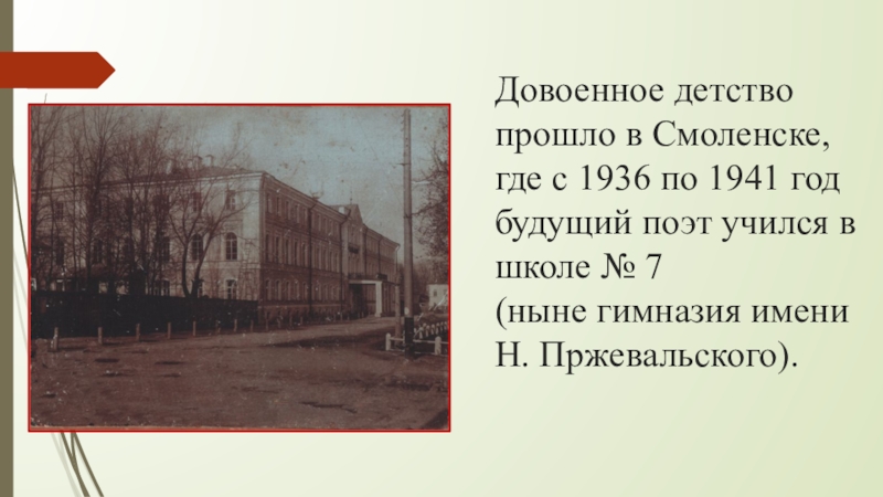 Слайд 9Довоенное детство прошло в Смоленске, где с 1936 по 1941 год