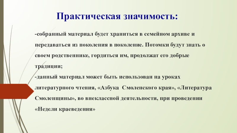 -данный материал может быть использован на уроках литературного чтения, «Азбука Смоленского края», «Литература Смоленщины», во внеклассной деятельности, при проведении «Недели краеведения»