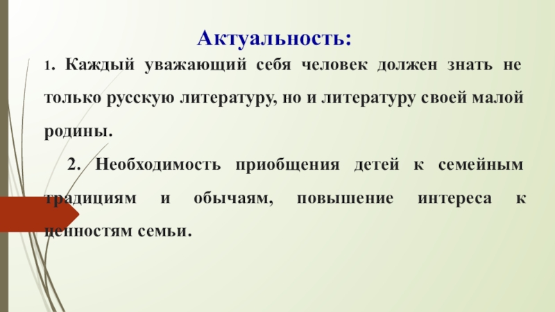 2. Необходимость приобщения детей к семейным традициям и обычаям, повышение интереса к