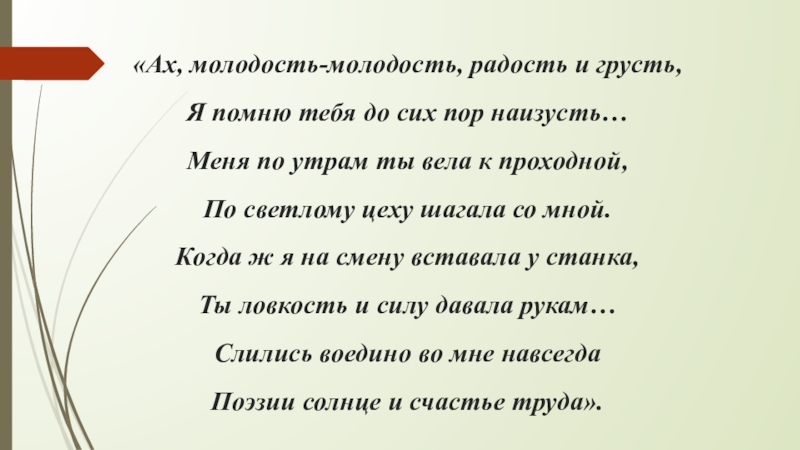 Когда ж я на смену вставала у станка,