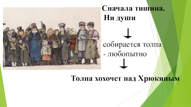 Сначала тишина. Ни души.собирается толпа- любопытноТолпа хохочет над Хрюкиным.