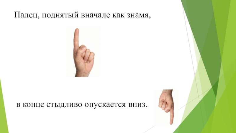 Палец, поднятый вначале как знамя, в конце стыдливо опускается вниз.