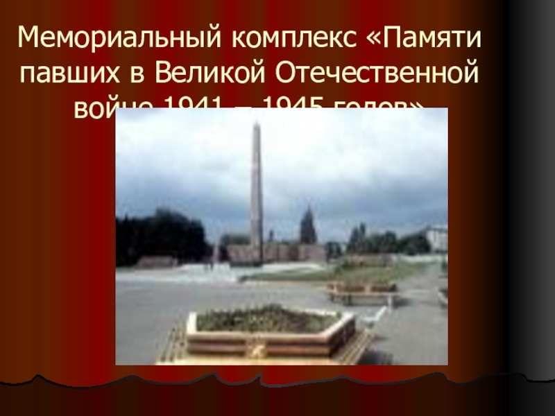 Слайд 22Мемориальный комплекс «Памяти павших в Великой Отечественной войне 1941 – 1945