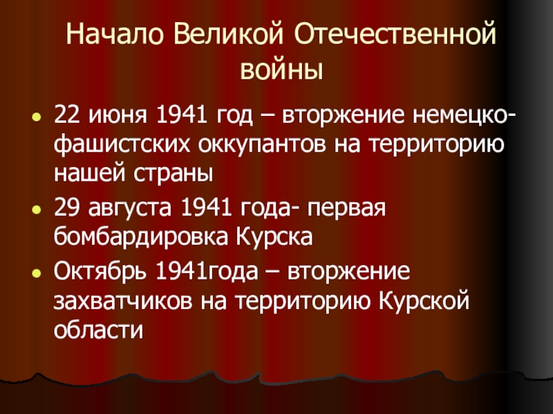 Октябрь 1941года – вторжение захватчиков на территорию Курской области