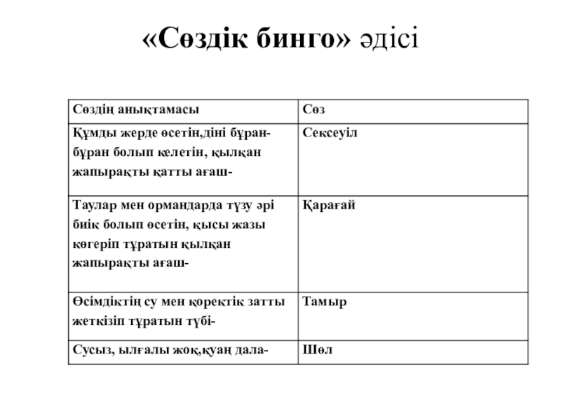 «Сөздік бинго» әдісі /шөл,сексеуіл,қарағай,тамыр/