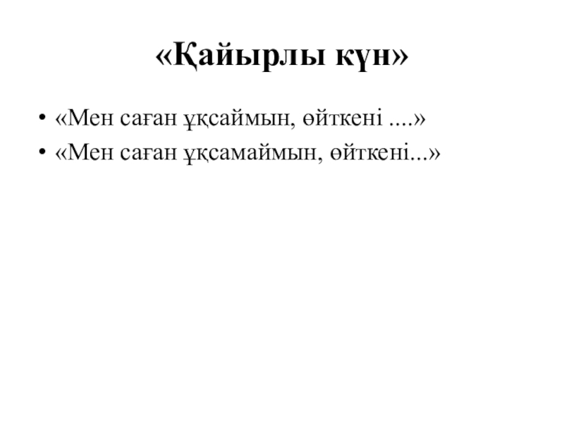 «Қайырлы күн» «Мен саған ұқсаймын, өйткені ....» «Мен саған ұқсамаймын, өйткені...»