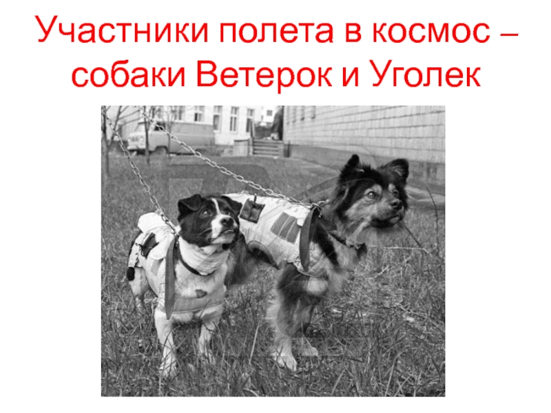 Слайд 22Участники полета в космос – собаки Ветерок и Уголек