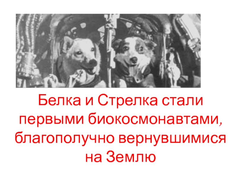 Слайд 18Белка и Стрелка стали первыми биокосмонавтами, благополучно вернувшимися на Землю