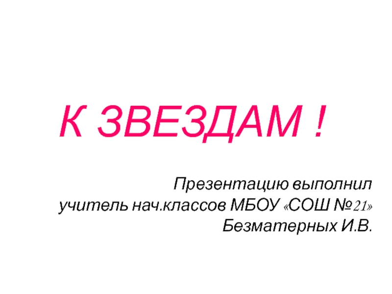Презентацию выполнил учитель нач.классов МБОУ «СОШ №21» Безматерных И.В. космической эры К ЗВЕЗДАМ !