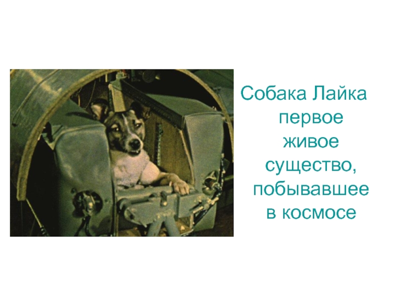 Слайд 16Собака Лайка первое живое существо, побывавшее в космосе
