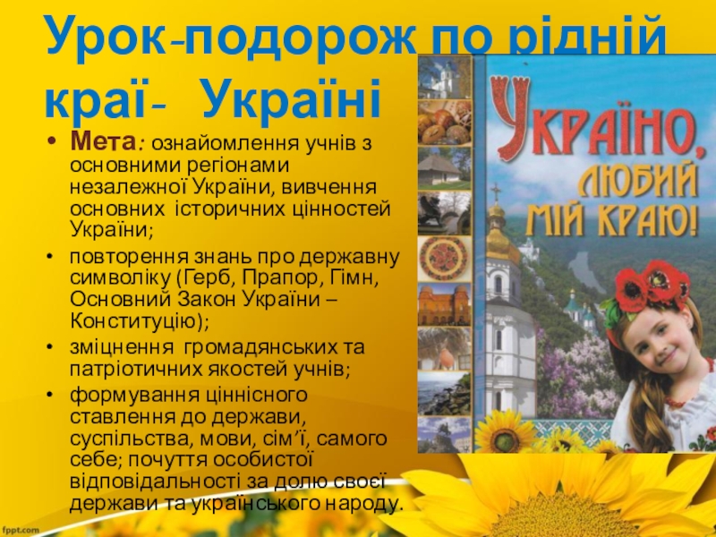 Слайд 2Урок-подорож по рідній краї- Україні