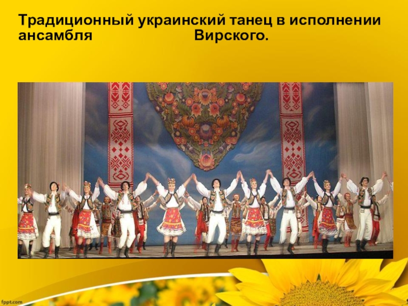 Слайд 7Традиционный украинский танец в исполнении ансамбля