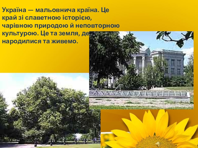 Слайд 6Україна — мальовнича країна. Це край зі славетною історією, чарівною природою