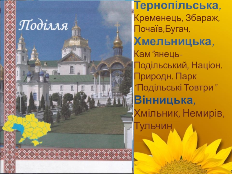 Слайд 15Тернопільська, Кременець, Збараж, Почаїв,Бугач,